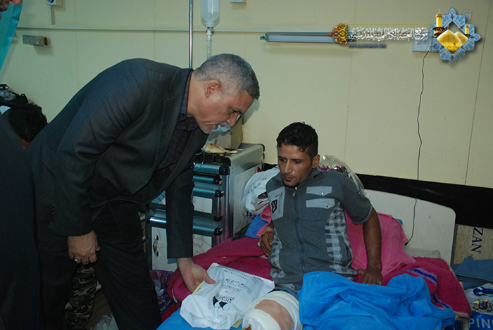 وفد خَدَمَة الإمامين الجوادين "عليهما السلام" يزور الجرحى الحشد الشعبي والمصابين في التفجير الإرهابي عند مدخل مدينة الكاظمية المقدسة