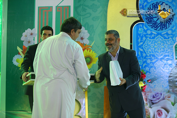 تزامناً مع أفراح أمتنا الإسلامية بعيد الله الأكبر الغدير الأغر ويوم المباهلة المبارك، أقامت الأمانة العامة للعتبة الكاظمية المقدسة / قسم الشؤون الفكرية والثقافية ـ دار القرآن الكريم محفلاً قرآنياً تضمن تلاوات قرآنية معطرة تنسمت بها أجواء الصحن الكاظمي الشريف, شارك فيه كل من: القارئ علي فلاح خشان وحسام المنشداوي وأحمد الجابري, حيث أجادوا بأصواتهم العذبة قراءة للقران الكريم, ليؤكدوا من خلال مشاركتهم الأهمية البالغة للقران الكريم وضرورة الاهتمام به بعدِّه المصدر الرئيس لديننا الإسلامي الحنيف, بحضور جمع غفير من زائري الإمامين الجوادين "عليهما السلام" للاستماع للتلاوات المباركة لينهلوا من فيوضات الرحمة الإلهية لنيل الأجر والثواب. وشهد المحفل مشاركة خادم الجوادين مصطفى الكناني بقراءة الموشحات والابتهالات الإسلامية التي ترنّمت بحب الرسول الأكرم وأهل بيته الأطهار "عليهم السلام", كما تخلل المحفل القرآني مسابقة الأسئلة والأجوبة واختتم بتوزيع الشهادات التقديرية والهدايا التذكارية على المشاركين .