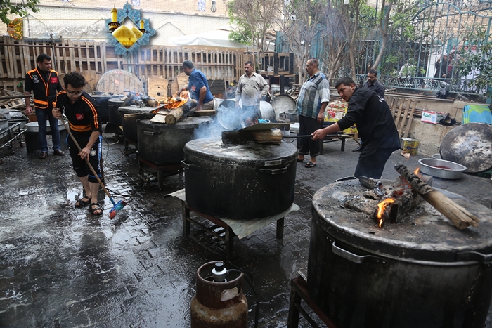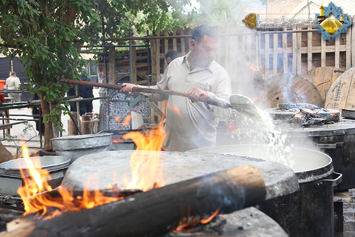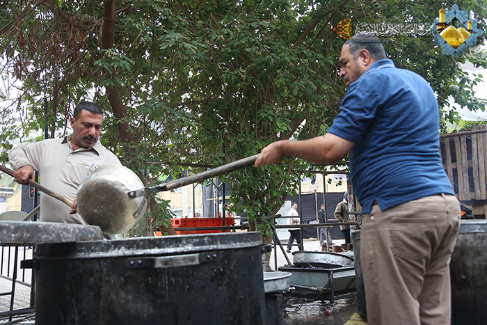 بروحٍ ولائية ثابتة، وجهود مضنية وعمل دؤوب وتفانٍ منقطع النظير ودوافع إنسانية يحيطها الإخلاص والتفاني والحرص الدائم على الخدمة الجليلة، يواصل خَدَمَة الإمامين الكاظمين"عليهما السلام " في مضيف الجوادين بمشاركة مجموعة من المتطوعين المتشرفين منذ وقت مبكر لأجل تقديم الخدمات للزائرين الوافدين إلى الصحن الكاظمي الشريف، ومدينة الكاظمية المقدسة ممن توافدوا لإحياء زيارة الأربعين المباركة وتهيئة الوجبات الغذائية وإعداد الموائد والأطعمة للجموع الزائرة وعلى مدار الساعة، إيماناً منهم بنهج أئمة أهل البيت"عليهم السلام" وحرصهم على تقديم أفضل الخدمات للزائرين الكرام.
