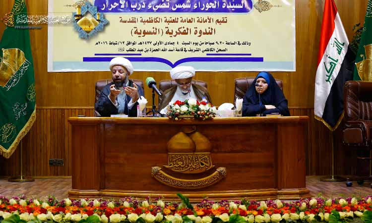 إحياءً لذكرى ولادة عقيلة البيت الهاشمي النقية التقية رمز الغيرة والعفاف والشجاعة والبلاغة وقوة الجنان السيدة زينب بنت أمير المؤمنين علي بن ابي طالب "عليهما السلام"، ولأجل أن نستقي من نمير عصمتها الأثر الفكري والعلمي والمعرفي, عقدت الأمانة العامة للعتبة الكاظمية المقدسة ندوتها الفكرية النسوية يوم السبت 4جمادى الأولى 1437هـ الموافق 13 شباط 2016م في قاعة الحمزة بن عبد المطلب تحت شعار: " السيدة الحوراء شمس تضيء درب الأحرار" .