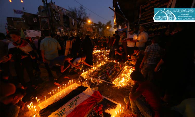 خدام الجوادين يقيمون وقفة عزائية ومراسم تأبينية في موقع فاجعة الكرادة