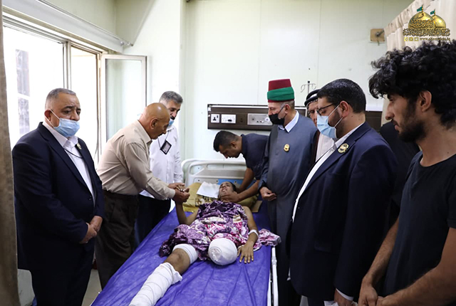 كما شهدت الزيارة تفقد الجرحى في مدينة الإمامين الكاظمين "عليهما السلام" الطبية، والاطمئنان على وضعهم الصحي ومتابعة سير المراحل العلاجية لهم، ونقل الوفد الزائر تحيات الأمانة العامة للعتبة الكاظمية المقدسة المتمثلة بأمينها العام الدكتور حيدر الشمّري وأعضاء مجلس إدارته الموقّر، مستنكراً هذه الأعمال الإرهابية التي تطال الأبرياء والشرفاء من أبنائنا الذين أصبحت جراحاتهم أوسمة شرف وعزة وفخر، ووصمة عار في جبين أعداء الإنسانية الذين عبّروا عن حقدهم ضد أتباع أهل البيت "عليهم السلام".