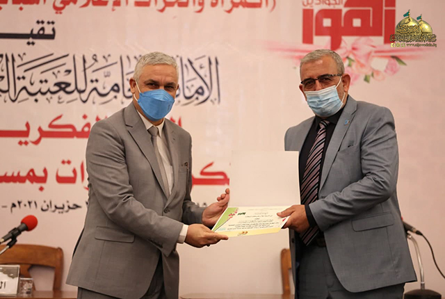 وبهذه المناسبة المباركة وبرعاية كريمة من قبل خادم الإمامين الكاظمين الجوادين، الأمين العام للعتبة الكاظمية المقدسة الدكتور حيدر حسن الشمّري، أقامت الأمانة العامة للعتبة الكاظمية المقدسة/ قسم الشؤون الفكرية والثقافية، في رواق سيدنا عبد الله بن عبد المطلب "عليه السلام" الندوة الفكرية النسوية تحت شعار: ( المرأة والحِراك الإعلامي أسباب التراجع وطموحات النهوض ) وتكريم الفائزات بمسابقة القصة القصيرة، بحضور نائب الأمين العام للعتبة الكاظمية المقدسة المهندس سعد محمد حسن، وعضو مجلس الإدارة والمُشرف على قسم الشؤون الفكرية والثقافية المهندس جلال علي محمد، ونخبة من الشخصيات العلمية والأكاديمية، وممثلي الأقسام الفكرية والثقافية والإعلامية في المؤسسات الحكومية.