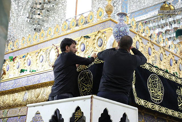 إحياءً للذكرى السنوية لاستشهاد كريم سادات مضر الإمام محمد بن علي الجواد "عليه السلام"، وتجديداً للعهد والولاء للرسول الأكرم وآله الأطهار "عليهم السلام"، شهد ضريح الإمامين الكاظمين الجوادين "عليهما السلام" تعليق الأوشحة ونشر السواد، إيذاناً لإعلان مظاهر الحزن والحِداد بهذا المصاب الجلل الذي أفجع قلوب الموالين لآل بيت النبوة "عليهم السلام"، حيث قامت وحدة الحرم، ووحدة الخياطة والتطريز التابعة لشعبة خدمات العتبة المقدسة بتلك الأعمال، تزامناً مع إقامة مراسم إستبدال رايتي الإمامين الجوادين عليهما السلام" برايتي السواد فوق القبتين الشريفتين.