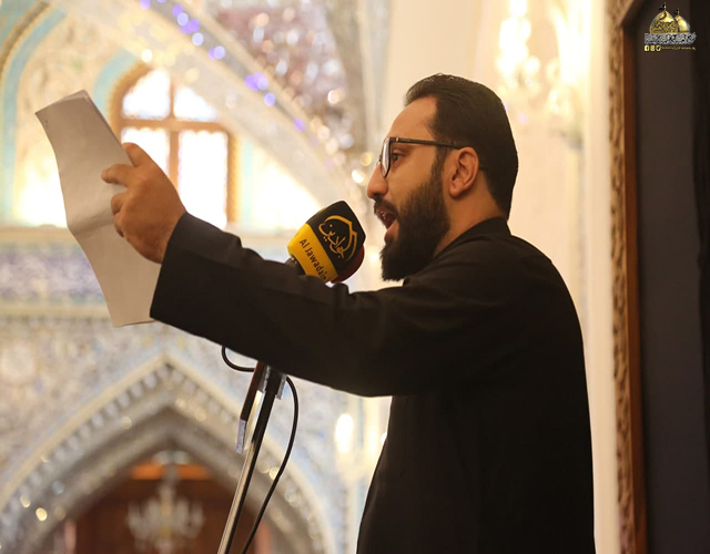 انطلاقا من قول رسول الله "صلى الله عليه وآله وسلم": (إنّ لقتل الحسين حرارة في قلوب المؤمنين لا تبرد أبداً)، ولتجديد عهد الولاء والوفاء لسيد الشهداء الإمام الحسين "عليه السلام" وأهل بيته وأصحابه الذين نالوا شرف التضحية والشهادة في يوم العاشر من محرم الحرام، وبرعاية مباركة من قبل خادم الإمامين الكاظمين الجوادين، الأمين العام للعتبة الكاظمية المقدسة الدكتور حيدر حسن الشمّري، أقام موكب خدّام العتبة المقدسة مجالس العزاء الحسيني وإحياء الشعائر الدينية، في رواق عبد الله بن عبد المطلب "عليه السلام" والتي تستمر للأيام العشرة الأولى من شهر محرم الحرام، استضيف في أولى جلساته فضيلة الشيخ عماد الكاظمي ليتحف الحضور بمحاضرة دينية قيمة بعنوان: (تأملات في كلمات ومواقف الإمام الحسين "عليه السلام")، مستشهداً بقوله "عليه السلام": (إنا أهل بيت النبوة، ومعدن الرسالة، ومختلف الملائكة، ومحل الرحمة، بنا فتح الله وبنا يختم..)، استعرض فضيلته بيان مقامات أهل البيت "عليهم السلام".