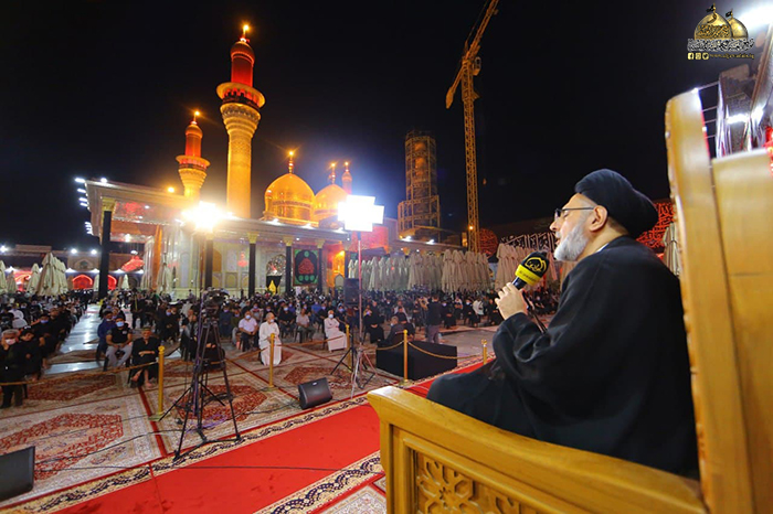 حرصت الأمانة العامة للعتبة الكاظمية المقدسة متمثلة بأمينها العام خادم الإمامين الكاظمين الجوادين الدكتور حيدر حسن الشمّري على مواصلة البرنامج العزائي لإحياء العشرة الثانية من شهر محرم الحرام لسنة 1443هـ، بحضور خطيب المنبر الحسيني سماحة السيد عبد النافع الموسوي، وبمشاركة نخبة من رواديد مدينة الكاظمية المقدسة، حيث شهد البرنامج محاضرات دينية استعرض خلالها السيد الموسوي ما سجّلته النهضة الحسينية الخالدة عبر صفحاتها الناصعة والمُشرقة من أبعاد دينية وإصلاحية وإنسانية وفكرية وما حققته من حفظ للمبادئ الحقّة والدعوة إلى نصرة الدين الإسلامي وإحياء الرسالة المحمدية ، مسلطاً الضوء على البعد الأخلاقي والإنساني في موقف الطفّ الذي ارتبط بضمير الأمة ارتباطاً وثيقاً.