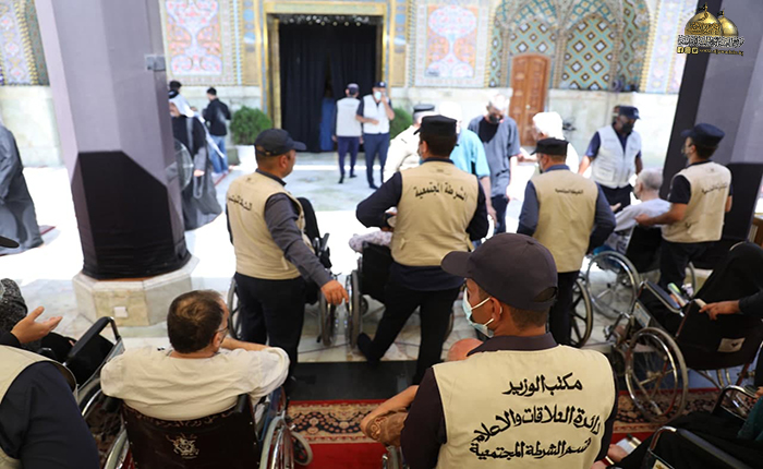تشرفت بزيارة الإمامين الكاظمين الجوادين "عليهما السلام" مجموعة من المسنين وذوي الاحتياجات الخاصة في دار نعمة لرعاية كبار السن بمبادرة إنسانية قامت بها وزارة الداخلية/ مديرية الشرطة المجتمعية بالتعاون مع الأمانة العامة للعتبة الكاظمية المقدسة/ قسم حفظ النظام. وشهد البرنامج مراسم الزيارة والدعاء عند المرقدين الطاهرين، والتوجه في جولة للاطلاع على معالم العتبة الكاظمية المقدسة، واختتمت الجولة بالتبرك بمضيف الإمامين الكاظمين "عليهما السلام"، والتكفل بمهمة نقل الوفد ذهابا وإياباً رعايةً لسلامتهم.