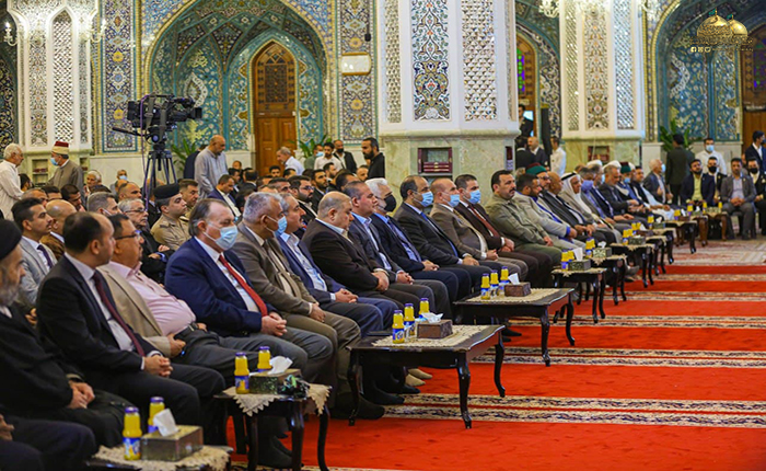 في كل عام ومع بزوغ فجر يوم السابع عشر من شهر ربيع الأول تتوارى الشمس حياءً وخجلاً من سطوع نور النبوة والإمامة وولادة سيد الأنبياء والمرسلين محمد "صلى الله عليه وآله" الذي بعثه الله هداية ورحمة للعالمين لينقذهم من ظلمات الكفر والشرك إلى نور الإيمان والتوحيد، وحفيده عميد الصادقين ولسان الناطقين الإمام جعفر بن محمد "عليه السلام"، واحتفاءً بهذه المناسبتين المباركتين، وغمرة الأفراح التي يعيشها العالم الإسلامي، شهدت العتبة الكاظمية المقدسة، وبرعاية كريمة من معالي رئيس ديوان الوقف الشيعي خادم الإمامين الكاظمين الجوادين الدكتور حيدر حسن الشمّري احتفالاً مركزياً بهيجاً بحضور أعضاء مجلس الإدارة، والأمين العام للعتبة العسكرية المقدسة، ووفود العتبات المقدسة العلوية والحُسينية والعباسية، ووفود المزارات الشريفة، ووفد رئاسة مجلس الوزراء، ورئيس ديوان الوقف السنُي، ووزير الثقافة والسياحة والآثار، وأمين بغداد، وعددٍ من الشخصيات الدينية والحكومية والاجتماعية، وجمع غفير من زائري الإمامين الكاظمين الجوادين "عليهما السلام".