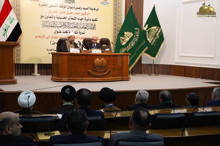 برعاية معالي رئيس ديوان الوقف الشيعي الدكتور حيدر حسن الشمّري، استضافت الأمانة العامة للعتبة الكاظمية المقدسة في قاعة سيدنا الحمزة بن عبد المطلب "عليه السلام" في رحاب الصحن الكاظمي الشريف يوم الخميس 23/12/2021 الندوة التثقيفية التي تحمل عنوان: (استراتيجية مكافحة التطرف العنيف المؤدي للإرهاب) التي أقامتها دائرة إحياء الشعائر الحُسينية في ديوان الوقف الشيعي، وبالتعاون مع الأمانة العامة للعتبة الكاظمية المقدسة، بحضور نائب الأمين العام المهندس سعد محمد حسن، وعددٍ من أعضاء مجلس الإدارة الموقر، والوكيل الإداري والمالي لرئيس ديوان الوقف الشيعي الأستاذ حسين التميمي، وعدد من مسؤولي ديوان الوقف الشيعي، وكوكبة من الشخصيات الدينية والاجتماعية والأكاديمية.