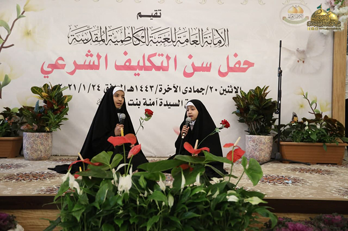 دأبت الأمانة العامة للعتبة الكاظمية المقدسة متمثلة بأمينها العام خادم الإمامين الكاظمين الجوادين "عليهما السلام" الدكتور حيدر حسن الشمّري على رعاية الفعاليات التربوية التي من شأنها ترسيخ الثقافة الدينية في نفوس أجيالنا الفتية، وبيان الفوائد التربوية والمعنوية المتوخاة من الالتزام بالوظائف والتكاليف الشرعية، وعلى هذا السبيل أقامت الأمانة العامة للعتبة الكاظمية المقدسة/ قسم الشؤون الفكرية والثقافية/ مركز القرآن الكريم ـ وحدة الإرشاد والشؤون القرآنية النسوية حفل تكليف لـ (300) فتاة ممن أتمَمَن التسع سنوات قمرية من أعمارهن، تزامناً مع ذكرى ولادة سيدة نساء العالمين فاطمة الزهراء "عليها السلام" بحضور نائب الأمين العام للعتبة الكاظمية المقدسة المهندس سعد محمد حسن، وذوي الفتيات المكلفات.
