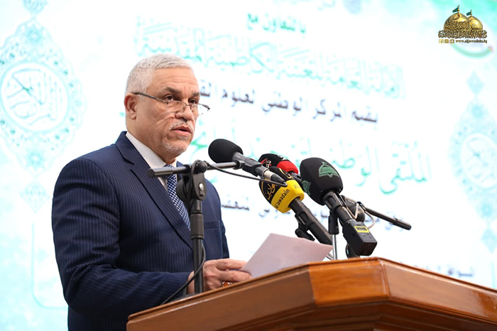 وأضاف: (أن التطور الذي طرأ على الكثير من الشخصيات القرآنية في العراق عن طريق وصول البعض إلى مراتب الشهادات العُليا ومشاركتهم القيمة في المسابقات الوطنية والدولية في مجال القرآن الكريم وتلاوته وتفسيره قد أوصلهم إلى النضوج الفكري الرائد والخبرة المتراكمة واللذان يمهدان إلى وضع القرار العلمي في مجال القوانين والقواعد والأسس التي عن طريقها يمكن الوصول إلى الإنصاف العادل بين المتنافسين في المسابقات القرآنية المختلفة، فها هي الكاظمية اليوم ومن جوار بحر العلوم الزاخر الإمامين الجوادين "عليهما السلام" نجتمع لنتدارس ما تم جمعه من لوائح تحكيم عديدة آخذين بنظر الاعتبار ما تم طرحه من مخرجات علمية رصينة أفرزتها لجان متخصصة في دول عديدة لها باع طويل في إجراء المسابقات القرآنية للخروج بقانون علمي رصين ينصفهم بالحق والعدل والمساواة).