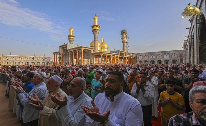 من جوار حرم الإمامين الكاظمين "عليهما السلام" جموع الموالين تحتشد لأداء صلاة عيد الفطر السعيد