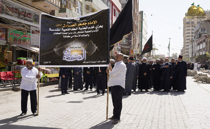 خدّام العتبة الكاظمية المقدسة يحيون شهادة الصادق من آل محمد "عليهم السلام"