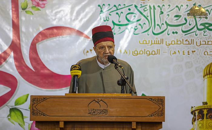 لمناسبة حلول عيد الغدير الأغر، يوم تجديد البيعة التي عقد لواءها النبي الأكرم محمد "صلى الله عليه وآله" بيده لعلي بن أبي طالب "عليه السلام" يوم الثامن عشر من ذي الحجة سنة 10هـ، ليسقي الوالهين من سلسبيل خيره وهدي نعمائه، ويفتح بمروره في كل عام العشق لمحمد النبي ولعلي الوصي وللأئمة من بعده "عليهم السلام" وإعلان العهد والولاء لصاحب الغدير وخليفة رسول ربّ العالمين على جميعِ المسلمين أمير المؤمنين الإمام علي بن أبي طالب "عليه السلام" بكل ألوان الولاء، فمن جنة الإمام الكاظم وحفيده الإمام الجواد "عليهما السلام"، شاركت الأمانة العامة للعتبة الكاظمية المقدسة الأمة الإسلامية أفراحها من خلال إقامة حفلها المركزي البهيج في رحاب صحن باب المراد، بحضور نائب الأمين العام للعتبة الكاظمية المقدسة المهندس سعد محمد حسن، وعددٍ من أعضاء مجلس الإدارة الموقر، والعديد من الشخصيات الحكومية والدينية والاجتماعية وجمع غفير من زائري الإمامين الجوادين "عليهما السلام".