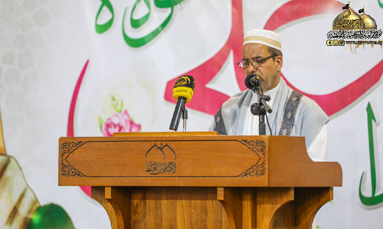 استهل الحفل بتلاوة آيٍ من الذكر الحكيم شنف بها قارئ العتبة المقدسة الدكتور الشيخ رافع العامري مسامع الحاضرين، بعدها كلمة الأمانة العامة للعتبة الكاظمية المقدسة وألقاها نائب أمينها العام جاء فيها قائلاً: (من هذه البقعة الطاهرة نرفع إلى مقام صاحب العصر والزمان الحجة بن الحسن العسكري عجل الله تعالى فرجه الشريف وإلى مراجعنا العظام والعالم الإسلامي كافة أزكى التهاني والتبريكات بعيد الله الأكبر يوم الغدير الأغر .. ونحن إذ نحتفى معكم في هذا اليوم من هذه الرحاب الطاهرة لابد أن نجعله محطة للتزود من صاحب البيعة نسير على منهجه الذي كان مضرب الامثال في العدالة والإنصاف وإحقاق الحق ونصرة المظلومين والمستضعفين ونجدد عهد الولاء والبيعة لأمير المؤمنين علي بن أبي طالب عليه السلام.