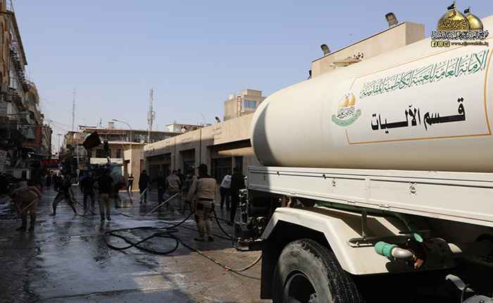 الأمانة العامة للعتبة الكاظمية المقدسة تطلق حملة تنظيف الشوارع المؤدية للصحن الشريف بعد انتهاء مراسم عاشوراء