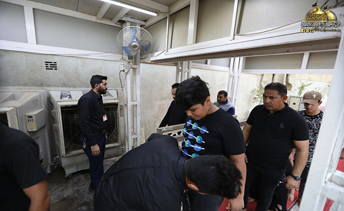 مع توافد الحشود الكبيرة للزائرين الكرام إحياءً لذكرى عاشوراء الأليمة لابد من وجود خدمة متواصلة ومستمرة، يقدّمها خدام العتبة الكاظمية المقدسة بهمّة وإخلاص عاليين إلى تلك الجموع، حيث بذلت تلك الملاكات قصارى جهودها وهي ترفع شعار الحزن والأسى من أجل تقديم الخدمات اللازمة في مفاصل الصحن الكاظمي الشريف وفق تنسيق عالٍ بين الوحدات والشعب والأقسام لتنفيذ الخطة التي أعدتها الأمانة العامة للعتبة الكاظمية المقدسة متمثلةً بأمينها العام خادم الإمامين الكاظمين الجوادين الدكتور حيدر حسن الشمّري وأعضاء مجلس إدارته الموقّر.
