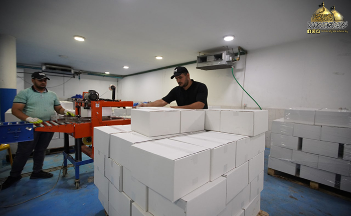 ولمعرفة تفاصيل أكثر عن طبيعة الإنتاج تحدّث لموقع العتبة الكاظمية المقدسة الإلكتروني مدير وحدة التأسيسات الصحية الخادم مقداد محمد علي شبر قائلاً: استناداً إلى توجيهات الأمانة العامة للعتبة الكاظمية المقدسة وفق خطتها واستعداداتها لموسم أربعينية الإمام الحسين "عليه السلام"، باشر فريق وحدة الصحيات منذ وقت مبكر وعلى مدار (24) ساعة باستنفار الجهود وزيادة الطاقة الإنتاجية لتوفير الكميات المناسبة من المياه الصحية، فضلاً عن تجهيز المعمل بالمواد الأولية من الكارتون، وعبوات الأقداح والأغلفة المصنوعة من رقائق الألمنيوم المطابقة للمواصفات المعتمدة والآمنة على صحة الإنسان.