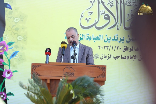 استهلت فعاليات افتتاح المهرجان بتلاوة من الذكر الحكيم بصوت قارئ العتبة المقدسة الخادم باقر أحمد، بعدها كلمة الأمانة العامة للعتبة الكاظمية المقدسة وألقاها أمينها العام جاء فيها: (حريّ بنا أن نقتدي بالسيدة الزهراء البتول عليها السلام، وأن نجعل سيرتها خارطة طريق لنا بعد أن تجسدت فيها المُثل العليا فكراً ومنهجاً وسلوكاً.. ولا يخفى عليكم أيها الحضور الكريم أنها تستحق منا ان ندخل السرور على قلبها المفجوع ومن مصاديق إدخال السرور هو اجتماعنا اليوم بجوار الإمامين الكاظمين الجوادين عليهما السلام في (مهرجان أم أبيها الأول) فبعد أن ولدت فكرة هذا المشروع تم التنسيق مع المؤمنين الأفاضل الذين لهم رغبة دائمة في دعم الشباب وطلبة الجامعات فاستمر التنسيق مع الجامعات برؤسائها ومسؤولي النشاطات فيها للحصول على أسماء بناتنا الطالبات العزيزات ممن يرتدين العباءة الزينبية وهو دليل على حرص بناتنا الكريمات على إحياء التزام السيدة الزهراء عليها السلام بتعاليم دين الله الإسلام من خلال ارتداءهن العباءة وبعد التواصل المستمر تم تزويدنا بأسماء الطالبات العزيزات في الجامعات الحكومية ولأهمية الموضوع وخصوصيته الكبرى والتشجيع عليه تم شمول بعض الكليات الأهلية.