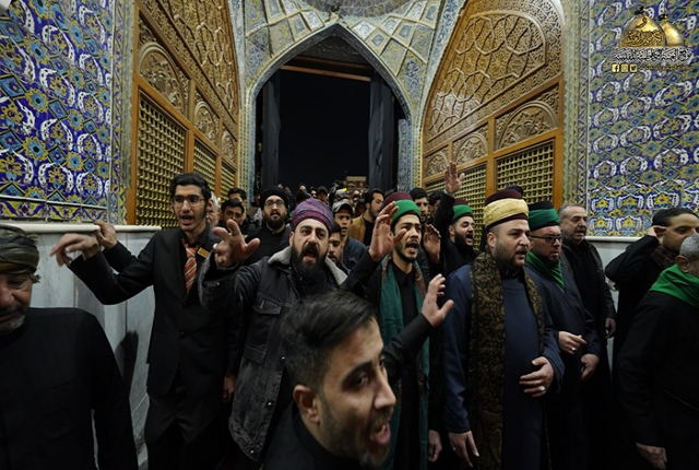 كما يفخر العُلماء والأساتذة والطلاب في الحوزة العلمية في النجف الأشرف في التشرف بخدمة زوارك، فهاهم طلاب العلوم الدينية كعادتهم في مشروعهم التبليغي يتشرفون بجواب المسائل الشرعية، ومحاولة حل المشاكل الاجتماعية ومشاركة هموم الأيتام من آل محمد، فشكراً لله على توفيقه لذلك، وشكراً لأهلنا الزوار الأعزة الأحبة وهم يتفضلون علينا بأن نكون في خدمتهم).