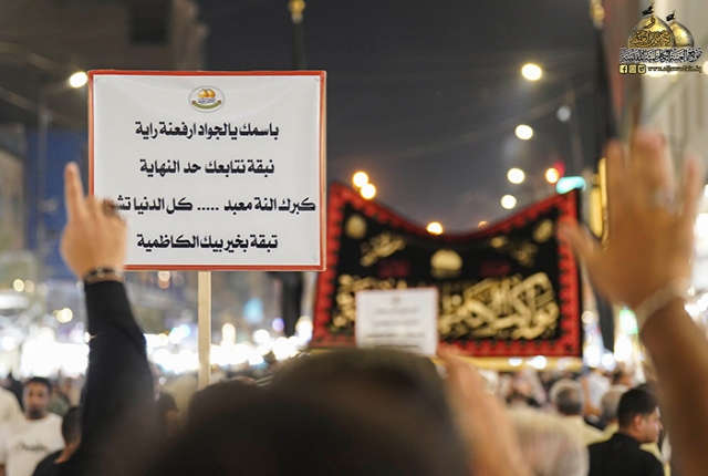 تقف جموع الموالين قبالة صرح الجود والكرم، وقفة حزن وأسى وحِداد، لتُعلن عن موسم شهادة تاسع الصفوة من الأئمة الهداة باب المراد الإمام محمد بن علي الجواد "عليه السلام"، إذ أقامت الأمانة العامة للعتبة الكاظمية المقدسة وبرعاية أمينها العام خادم الإمامين الكاظمين الجوادين الدكتور حيدر حسن الشمّري المراسم السنوية لاستبدال رايتي الإمامين الكاظمين الجوادين "عليهما السلام" التي تَعلو القبتين الشامختين برايتي الحزن السوداويتين، والتي جَرَت بحضور ممثل المرجع الديني الأعلى سماحة الشيخ حسين آل ياسين، والمتولي الشرعي للعتبة الرضوية المقدسة سماحة الشيخ أحمد مروي، ومشاركة وفود العتبات المقدسة العلوية والحسينية والرضوية والعسكرية والعباسية والمزارات الشريفة، ونُخبة من السادة الأجلاء والمشايخ الفضلاء في المشروع التبليغي الحوزوي، وعدد من الشخصيات الرسمية والاجتماعية وجمع غفير من وجهاء وشيوخ مدينة الكاظمية المقدسة ومسؤولي دوائرها الأمنية والخدمية وزائري الإمامين الجوادين "عليهما السلام".