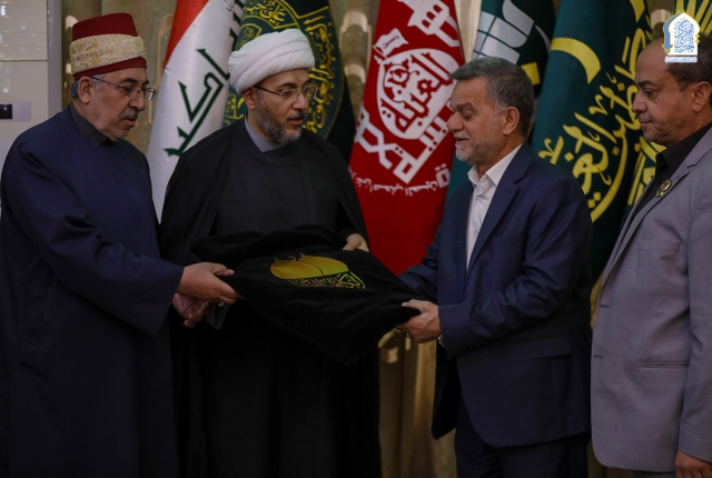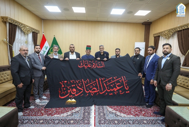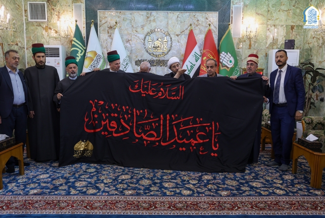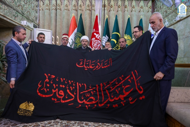 الأمانة العامة للعتبة الكاظمية المقدسة تُسلّم الراية المباركة للإمام جعفر الصادق "عليه السلام" إلى العتبات المقدسة