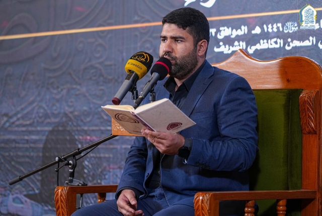 ثم اعتلى المنبر كل من: الرادودين الخادم كرار الكاظمي، والخادم علي عامر الكاظمي لقراءة قصائد النعي والرثاء لصاحب المصيبة الكبرى الإمام الصادق "عليه السلام" ملاذ المؤمنين وكهفهم الحصين.