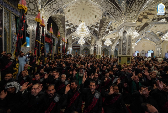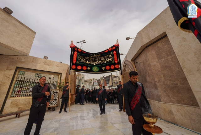 بعدها تجمهرت الحشود المعزية من الخدم وأقامت مجلساً تأبينياً في رحاب رواق سيدنا عبد الله بن عبد المطلب "عليه السلام" بالصحن الكاظمي الشريف حيث خيمت أجواء الحزن والأسى بهذا المصاب الجلل والرزء العظيم.