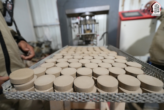 وأشار إلى أن المعمل لا يقتصر عمله على إنتاج الترب الجديدة فقط، بل يُسهم أيضاً في إعادة تدوير الترب المستخدمة في الصحن الكاظمي الشريف، بعد معالجتها، لتُعاد إلى الزائرين بحلّتها الجديدة، حاملةً روح الارتباط العقائدي العميق بالإمام الحسين "عليه السلام".