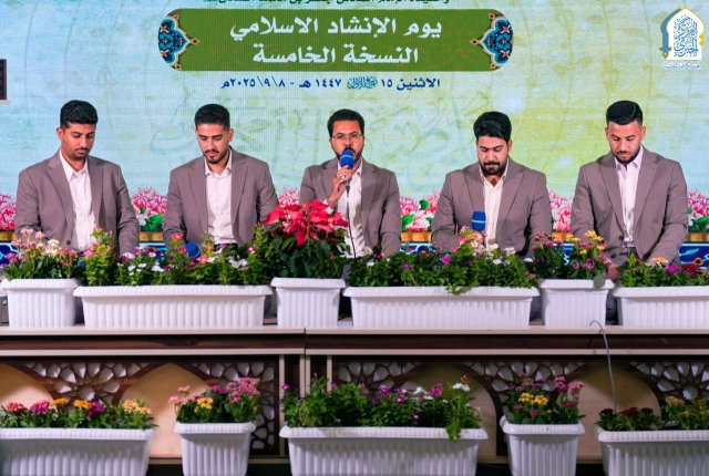فهذه هي النسخة الخامسة ليوم الإنشاد الإسلامي الذي يقام ضمن فعاليات أسبوع ربيع الولادة السنوي، والغاية من هذه النشاطات، وبالذات الإنشاد الإسلامي هو توظيف الصوت والقصيدة والطور والمقامات والألحان والأداء في نشر فكر أهل البيت "عليهم السلام" وبيان مقامهم من خلال ما ينشدون من أناشيد إسلامية، فلا بد من توظيف جميع الفنون في خدمة النبي محمد وآله الأطهار وإحياء أمرهم..).