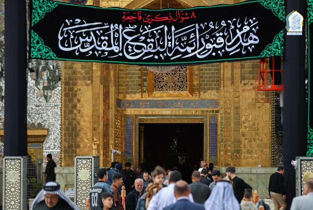 اتَّشحت العتبة الكاظمية المقدسة بمظاهر الحزن والأسى لاستقبال الذكرى الأليمة والفاجعة الكبرى لهدم قبور أئمة البقيع المقدس في الثامن من شوال سنة 1344هـ/ 1926م، في مشهد يعكس الارتباط الروحي بهذه المناسبة حيث تم نشر السواد والكلمات النورانية على ضريح الإمامين الجوادين "عليهما السلام" وأرجاء الصحن الشريف، وذلك لتجديد العهد والولاء، والتمسك بنهج أئمة الهدى "عليهم السلام"، والاقتداء بسيرتهم المباركة.