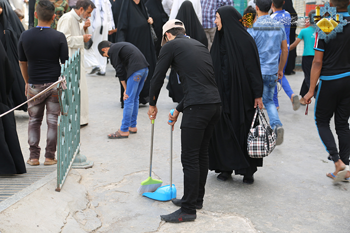 أما المهمة الأخرى التي قام بها القسم في هذا السياق فقد أسند له تنظيف الشارعين الجديدين اللذين تم فتحهما مؤخراً وهما شارع الإمام علي"عليه السلام" وشارع الإمام صاحب الزمان "عجل الله فرجه"، حيث تم التنسيق مع الإخوة المتطوعين الذي شاركوا إخوانهم من خَدَمة الإمامين في هذا المجال وأوكلت مهمة التنظيف والعناية وتقديم الخدمات لهم في هذه المنطقة من مدينة الكاظمية المقدسة، فضلاً عن قيام قسم آخر من هؤلاء الإخوة الموالين بتنظيف الشوارع الأخرى المؤدية إلى الصحن الشريف، كما تم التنسيق مع العتبة العباسية المقدسة ومجلس محافظة بغداد لتوفير كابسات لتسهيل عملية رفع النفايات، وتوفير الحمامات الصحية التي تكون على شكل كرفانات في الشارعين المذكورين).