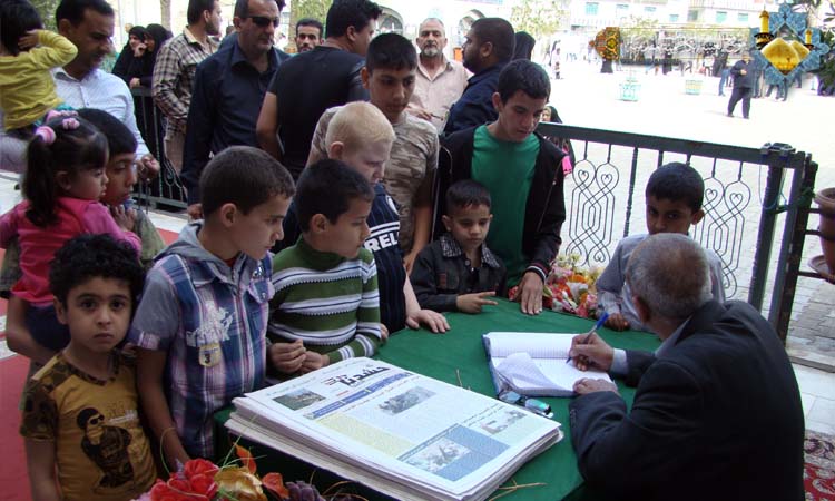 أطفال وقفوا أمام أبواب موسى والجواد "عليهم السلام"، عَمُرَت قلوبهم الصافية النقية البيضاء بالبراءة والحب والولاء، حيث شاركت تلك الكوكبة من البراعم وبكل عفوية الزائرين الكرام في مشروع إهداء الصلاة والزيارة لأبطال الحشد الشعبي المقدس الذي أطلقته الأمانة العامة للعتبة الكاظمية المقدسة تحت شعار: (وأعضُدهُم بالنَّصر وأعنهم بالصَّبر)، حيث حملت بأكفها البيضاء تلك المشاعر لتحولها إلى أكاليل من الدعاء والرحمة وتقدمها إلى الرابضين في مواجهة قوى الشر والرذيلة والإرهاب، لمن حافظوا على آمالهم وطموحاتهم ممن سرق الإنسانية واستباح الطفولة، وتقدمها لرجال مؤمنين عشقت أنفسهم الكرامة والتضحية وصنعوا المجد بمداد دمهم لكي تنتصر الطفولة .