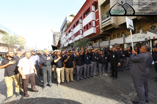 عاشوراء ملحمة المآسي الإنسانية التي بَقِيَ صوتها مدوياً يهزّ الضمير الإنساني، وسطعَ نورها لتحمل لنا كلّ المعاني السامية، ومن المحطات العاشورائية للعتبة الكاظمية المقدسة في اليوم التاسع من محرم الحرام 1438هـ، خروجها بمسيرة عزائية حاشدة، بمشاركة أعضاء مجلس إدارة العتبة وكوكبة من خدام الإمامين الجوادين، مجدت الموقف الرسالي والبطولي للإمام الحسين "عليه السلام" ودوره الريادي في إصلاحه للإنسانية جمعاء، كما استذكروا ما جرى من مصائب وويلات على البيت النبوي. بعدها التأمت الحشود المعزية المؤمنة في مجلس للعزاء الحسيني لتجدد العهد والولاء بهذه المناسبة الأليمة لأبي الضيم الإمام الحسين وأهله وأصحابه "عليهم السلام" حيث خيمت أجواء الحزن والأسى في رحاب الصحن الكاظمي الشريف بهذا المصاب الجلل والرزْء العظيم.
