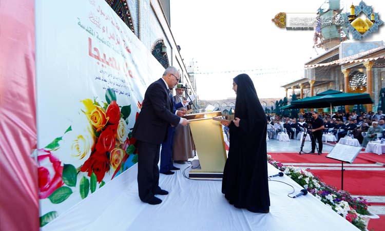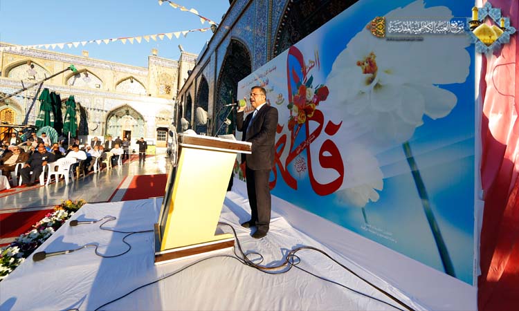 إحياءً لذكرى ولادة السيدة الصديقة الطاهرة, مكنون الكمالات، وخزين الفضائل والمكارم والحسنات، ورمز العفاف والشجاعة والبلاغة وقوة الجنان، ومثال الزهد والورع والعلم والشهامة, هذه الولادة العطرة التي ملأت سماء الإسلام بالفرح والسرور والغبطة، أقامت الأمانة العامة للعتبة الكاظمية المقدسة في رحاب الصحن الكاظمي الشريف حفلاً بهيجاً بهذه الذكرى الميمونة عصر الأربعاء 30 آذار 2016، بحضور الأمين العام للعتبة الكاظمية المقدسة أ .د. جمال عبد الرسول الدباغ وعدد من الشخصيات الدينية والاجتماعية وجمع غفير من زائري الإمامين الجوادين "عليهما السلام"، حيث استهل الحفل بتلاوة آيات مباركة من كتاب الله العزيز عطر بها قارئ العتبة السيد عمار الموسوي أسماع الحاضرين، تلتها كلمة الأمانة العامة للعتبة الكاظمية المقدسة ألقاها أمينها العام أ. د جمال الدباغ بين فيها قائلاً: ( عندما تطل علينا هذه الذكرى العزيزة على قلوب المؤمنين فإنها عادةً تبعث السرور في نفوسهم بهذه المناسبة الكريمة، ولكن الأهم من ذلك كله هو بعثُ السرور في قلب صاحبة الذكرى وذلك من خلال التمسك بنهجها وأخلاقها والتأسي بعفتها وحجابها والاقتداء بشجاعتها التي جعلتها من المدافعات عن الدين والعقيدة منذ شروق الرسالة الإسلامية وبعثة أبيها النبي الأعظم محمد "صلى الله عليه وآله" وحتى أواخر أيام حياتها.. وهذا يلقي على عاتق نسائنا مسؤولية جمة في رفع زخم المعركة ضد الدواعش وبث العزيمة في الأبن والأخ والأب والزوج التزاماً منها بفتوى الجهاد الكفائي التي أطلقتها المرجعية الدينية العليا المتمثلة بسماحة آية الله العظمى السيد علي الحسيني السيستاني "دام ظله الوارف" دفاعاً عن العراق والمقدسات). بعدها ارتقى المنصة فضيلة الشيخ منير الكاظمي ليتحفنا بمحاضرة دينية قيّمة استعرض فيها قبسات من شخصية السيدة الزهراء وسيرتها المباركة مبيناً أن ولادتها تكريماً للمرأة بشكل عام وللمرأة المسلمة بشكل خاص، حيث وجدت في كل مرحلة من مراحل عمرها الشريف انموذجاً حياً حيث درجت في مدارج الكمال حتى وصلت إلى الرفعة والسمو وكنّاها رسول الله"صلى الله عليه وآله": بـ (أم أبيها)، إذ كسرت الطوق لتخطّ لنا منهجاً قويماً في سلوكها الفكري والحضاري عندما أرادات ان تنتصر لحقها .