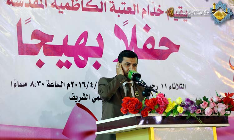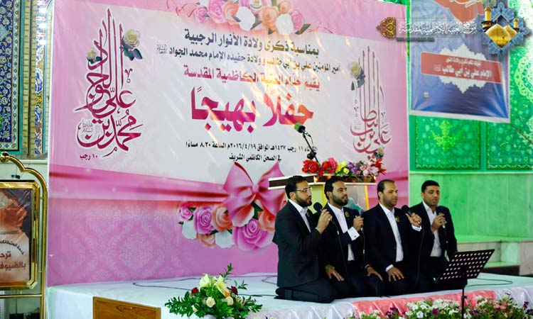 تأسى لكيد الخائنين وتألمُ ... مولاي تعلم أنهم ما أسلموا وكانت هناك مشاركة أخرى لخادم الإمامين الجوادين الشاعر الحسيني السيد نبيل أبو العيس بقصيدة مطلعها: عَجَزَ المديح ونادى في فمي الكَلِمُ ... ماذا اقول بمن تَحيا به الرِمَمُ وارتقى المنصة سماحة الشيخ منير الكاظمي ليلقي محاضرته الدينية بهذه المناسبة، تحدث فيها عن عظمة شهر رجب الأصب وأيامه وفضائله وقدر لياليه، كما استعرض فيها شمائل أمير المؤمنين الشريفة وسر شخصيته، ومنهج عدالته، وشهادات من ارتبط به وبفكره الإنساني، وأشار إلى الإمام الجواد "عليه السلام" ومعجزاته للناس ودوره الريادي في قيادة الأمة، وصولاته وجولاته العلمية. وكان لفرقة إنشاد الجوادين أداء متميز بهذه المناسبة المباركة بمجموعة من الموشحات الدينية، كما تألق الرادود الحسيني مصطفى الكناني بقصائده الجميلة ليرسم الفرحة والبهجة والسرور في نفوس الحاضرين.