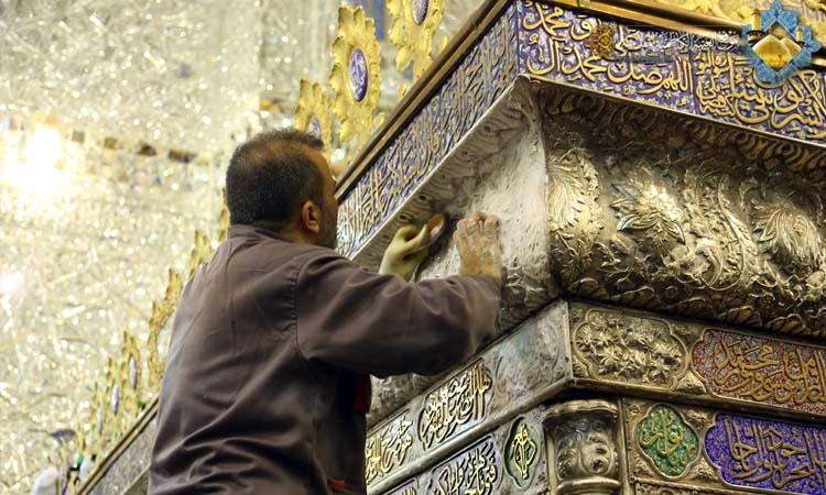 ضمْن الاستعدادات التي تقوم بها العتبة الكاظمية المقدسة لاستقبال ذكرى استشهاد الإمام الصابر موسى بن جعفر الكاظم "عليه السلام" قامت الملاكات المتخصصة في وحدة الخدمات المتنوعة/ الفضة، بإجراء عمليات الصيانة والجلي والتنظيف للأجزاء الفضية الخاصة بالشباك الطاهر لمرقدي الإمامين الهمامين موسى بن جعفر الكاظم ومحمد بن علي الجواد "عليهما السلام" وتلميعها وإدامتها بالكامل وبدقة عالية، وإزالة عوامل الأكسدة والترسبات التي تسببها الظروف المناخية، لأجل الحفاظ على صورتها الجميلة وإظهارها بما يتناسب والأجواء الإيمانية.