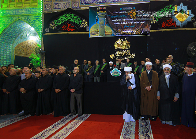 تلته كلمة السيد الأمين العام التي ابتدأها بعبارات التعزية والمواساة للإمام موسى بن جعفر الكاظم ع وللإمام المنتظر عجل الله فرجه الشريف ولمراجع الدين العظام بهذا المصاب الجلل, مشيراً الى عظم هذه الذكرى الاليمة وبدء أيام العزاء والحزن في هذه البقعة الطاهرة والتي نستذكر من خلالها كل القيم الانسانية الرسالية التي ضحى من اجلها الامام الكاظم, كما أكد على ضرورة الالتزام بنهج ووصايا أهل البيت(ع) واحياء ذكرهم العطر من خلال افشاء لغة السلام والتسامح والمحبة لنحيا حياة طيبة ملؤها الاحترام والمساواة, واشار الى ضرورة ان يكون خادم الامامين الجوادين بمستوى هذه المكانة التي يحظى بها وهي مسؤولية شرف الخدمة وهو شعار كل مؤمن, ثم تطرق الى مناقب الإمام السابع من أئمة الهدى عليهم السلام وما لاقاه من جور وظلم سلطة بني العباس الحاكمة التي حاربت الخط الرسالي والمدرسة الإلهية لأهل بيت الرحمة (ع), واشار الى ما أعدته العتبة الكاظمية لإحياء مراسم هذه الفاجعة الأليمة بعدها جرت مراسم استبدال الرايات في أجواء خيم عليها الحزن والأسى حيث َتجدُد احزان أهل البيت(ع) مع قرب حلول الخامسة والعشرين من شهر رجب الأصب. بعدها القى سماحة الشيخ (مكي آل شطيط الطائي) محاضرة جاء فيها: اليوم يرفع الموالون في العراق والعالم الاسلامي شعار الحداد والمواساة في ذكرى استشهاد امام عظيم فرض الله طاعته ومودته ومحبته, وحري بنا ان نتمسك بنهجه فهو من اهل بيت عرفوا بعصمتهم ومكانتهم الرفيعة عند الله والحق معهم وفيهم وبهم, فامامنا الكاظم(ع), يعلمنا كيف نقيم الصلاة ونأمر بالمعروف وننهى عن المنكر, وكيف نميز بين الحق والباطل وهو الرحمة المهداة بعد جده النبي الأكرم(ص) وآبائه الاطهار(ع), تلى ذلك القاء قصيدة لشاعر أهل البيت سماحة الشيخ (احمد الدر العاملي) خلدت صاحب الذكرى الاليمة والتي رسم فيها صورة رائعة عبرت عن مدى الحزن والألم الذي أصاب نفوس موالي أهل البيت بفقدان الإمام موسى بن جعفر الكاظم(ع) الذي كان نبراسا يستضاء به في ميادين العلم والمعرفة واستمرت فقرات مراسم العزاء بالمراثي الحسينية التي شارك فيها الرادود حيدر الصغير وكرار الكاظمي .