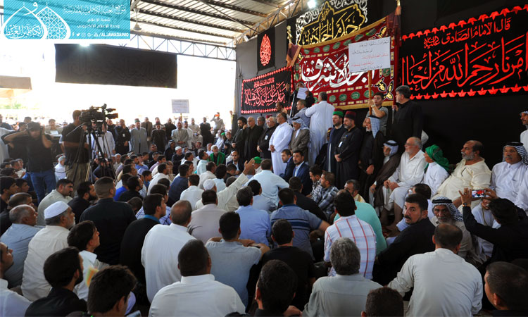 توافدت الحشود المؤمنة والمواكب الحسينية من أرض الغري مدينة أمير المؤمنين علي بن أبي طالب "عليه السلام" محافظة النجف الأشرف لإحياء ذكرى استشهاد خازن علم الرسول وسادس أئمة الهدى الإمام جعفر بن محمد الصادق"عليه السلام", حيث رفعت رايات الحزن والعزاء وصدحت حناجرهم بعبارات الأسى بهذه الذكرى الأليمة إلى الإمامين الكاظمين "عليهما السلام" حيث أقاموا مجالس العزاء والتأبين في رحاب صحن باب المراد مستذكرين إمامهم الصادق "عليه السلام" ومسيرة تلك المدرسة الرسالية المحمدية التي حفظت لنا أصالة الإسلام ونقاءه.وكان في استقبال جموع المعزين في هذه المراسم العزائية الأمين العام للعتبة الكاظمية المقدسة أ.د. جمال عبد الرسول الدباغ وأعضاء مجلس الإدارة وخدام الإمامين الجوادين "عليهما السلام", كما قَدّمت تلك المواكب الحسينية تعازيها الى أهالي مدينة الكاظمية المقدسة, وعبروا عن بالغ شكرهم وامتنانهم على حسن الضيافة والاستقبال والتي تؤكد أواصر الأخوة الإيمانية التي تجمعهم على حب وموالاة النبي الأعظم وآل بيته الأطهار"عليهم السلام" .