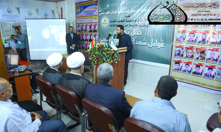 وكانت هناك محاضرات دينية لفضيلة الشيخ عماد الكاظمي حيث بين خلالها المقام العظيم لعوائل الشهداء والمسؤولية الكبيرة التي تقع على الجميع تجاه تلك العوائل التي قدمت أفلاذ أكبادها، مبيناً أن هذه اللقاءات يجب أن لا تكون فقط لإلقاء كلمات وإشادة بل أن تترجم إلى واقع ونعرف حقيقة المسؤولية، في قضاء حوائجهم والتخفيف من معاناتهم وتأمين سبل العيش الكريم لهم، في الوقت ذاته حث فضيلته مؤسسات المجتمع المدني أن تؤدي واجبها اتجاههم من خلال كفالتهم للأيتام وتفقد أحوالهم والسعي الحثيث في تلبية أمورهم كما تخلل الحفل مشاركة للرادود علي نجم بقراءة مجموعة من المراثي، ومشاركة لفرقة إنشاد العتبة المقدسة حيث صدحت صوات منشديها بقراءة القصائد التي افتخرت بتضحيات الشهداء الأبطال الذين سقت دماؤهم أرض العراق، واختتم الحفل بتكريم تلك العوائل المجاهدة وتوزيع المبالغ المادية والهدايا العينية عليهم من بركات الإمامين الهمامين الكاظم والجواد "عليهما السلام".