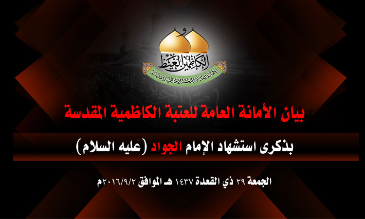 بيان الأمانة العامة للعتبة الكاظمية المقدسة بذكرى استشهاد الإمام الجواد "عليه السلام" 1437هـ