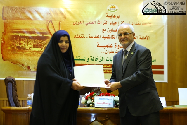 سعياً منها للحفاظ على التراث العريق لمدينة الكاظمية المقدسة، وإبراز الجوانب المشرقة لتأريخها الناصع؛ تواصل الأمانة العامة للعتبة الكاظمية المقدسة دعمها للنشاطات والفعاليات الفكرية والعلمية والثقافية، إذ تجسد ذلك في إقامة العديد من المؤتمرات والندوات، ورعايتها وتعاونها مع مختلف المؤسسات الرسمية ومؤسسات المجتمع المدني، وانطلاقاً من هذا المبدأ أقيمت في رحاب الصحن الكاظمي الشريف الأربعاء 19 تشرين الأول 2016 في قاعة حمزة بن عبد المطلب ندوة علمية تحت شعار: (الكاظمية المقدسة في كتابات الرحالة والمستشرقين) برعاية مركز إحياء التراث العلمي العربي/ جامعة بغداد وبالتعاون مع الأمانة العامة للعتبة الكاظمية المقدسة، بحضور الأمين العام للعتبة الكاظمية المقدسة أ.د. جمال عبد الرسول الدباغ وعدد من أعضاء مجلس الإدارة، ومدير المركز إحياء التراث الدكتور عبد الله حميد العتابي، وجمع من الأساتذة والباحثين والأكاديميين المختصين في مجال التراث والتاريخ، استهلت فعاليات الندوة بتلاوة آيٍ من الذكر الحكيم، تلاها كلمة الأمانة العامة للعتبة الكاظمية المقدسة ألقاها أمينها العام أ.د. جمال عبد الرسول الدباغ بيّن فيها الدور المهم الذي تضطلع به العتبة الكاظمية المقدسة في مجال نشر العلم والثقافة، وإحياء التراث الزاخر للإمامين الجوادين (عليهما السلام) ومدينة الكاظمية المقدسة، مشيراً إلى النشاط العلمي والفكري الأخير الذي أقيم في العتبة المقدسة والمتمثل بالمؤتمر العلمي الدولي السابع وموضوعه الذي التركز حول مدينة الكاظمية المقدسة وتاريخها وتراثها الثَرّ. وأضاف:(أن الأمانة العامة للعتبة الكاظمية المقدسة تسعى إلى إحياء التراث، كما تسعون، وكان لها خطوات مهمة في هذا المجال تلخصت في إعادة الكتب الخاصة بالمدينة المقدسة والتي طبعت منذ أمد بعيد ونفدت نسخها، فضلاً عن طباعة العديد من الكتب التي لم تطبع سابقاً، وكلها مهتمة بتاريخ هذه المدينة، أن عنوان الندوة هو مؤشر لنا على أن هذه المدينة المقدسة وعبر قرون حظيت باهتمام الباحثين على اختلاف أصنافهم ومشاربهم، ومن المؤكد أن هناك باحثين سلطوا الضوء على كتابات المستشرقين واهتموا بها، ولكن علينا ان نتذكر إننا لا نأخذ بالآراء التي أبداها المستشرقون كما وردت لان البعض منهم قد تكون له أغراض أخرى غير الأغراض الظاهرة، وعلينا أن تعامل بحذر مع هذه النصوص)، أعقب ذلك كلمة لمدير مركز إحياء التراث العلمي العربي الدكتور عبد الله حميد العتابي تطرق فيها إلى دور العتبة الكاظمية المقدسة في دعم مسيرة العلم والفكر والثقافة، وأضاف:(ونحن نقيم هذه الندوة المباركة في هذا المكان المقدس نحاول قدر الإمكان أبراز الدور الحضاري لهذه المدينة المقدسة مسجلين ابرز كتابات الرحالة والمستشرقين بحق مدينة الكاظمية، وبهذه المناسبة أتقدم باسم رئاسة جامعة بغداد بالشكر والتقدير للدكتور جمال عبد الرسول الدباغ لجهوده الرائعة لدعم الجامعات والكليات والمؤسسات العلمية والأكاديمية في العراق..) بعدها بدأت جلسات الندوة البحثية التي تناولت محاور عدة أهمها:( الوضع الإداري لمدينة الكاظمية المقدسة، والمشهد الكاظمي في كتب الرحالة خلال العهد العثماني الأخير، وشخصية الإمام موسى بن جعفر (عليه السلام) في آراء المستشرقين، ووصف العتبة الكاظمية المقدسة في كتابات الرحالة..)، كما شهدت فعاليات الندوة قراءة التوصيات الختامية التي طالبت بالاهتمام بمدينة الكاظمية المقدسة وإبراز دورها العلمي والديني والاجتماعي، والاهتمام بالجوانب الحضارية فيها، واختتمت بتوزيع الشهادات التقديرية على المشاركين في الندوة.