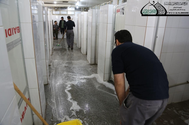 دون كَلَلٍ أو مللٍ تواصل ملاكات شعبة النظافة في العتبة الكاظمية المقدسة باستنفار جهودها وإنجاز أعمالها لأجل إدامة المكان الطاهر والحفاظ على نظافته وتوفير سبل الراحة للزائرين الكرام خلال موسم الأربعين، وبغية التعرّف على تلك النشاطات، تحدّث إلينا مسؤول شعبة النظافة السيد خضير عباس قائلاً: بدأنا بالخطة الخدمية والاستعدادات والتحضيرات منذ وقت مبكر حيث قامت فرق شعبة النظافة بتنظيف وإدامة دور الضيافة، وإقامة حملات تنظيف مجاري الصرف الصحي داخل الصحن الشريف وخارجه وتهيئة أكثر من (200) حاوية نفايات تم نشرها داخل العتبة المقدسة والشوارع المحيطة بها، كما رافقت تلك الأعمال جهود استثنائية خلال أيام الذروة للسيطرة على النظافة العامة داخل الحرم ومحيط الصحن الشريف وأماكن الضيافة وخيام إيواء الزائرين، والاهتمام بدورات المياه الصحية وتجهيزها بكميات كبيرة من المنظفات والمعقمات ورفع النفايات ونقلها إلى الأماكن المخصصة لها. فضلاً عن مجموعة من الأعمال تقوم بها ملاكاتنا بالتعاون والتنسيق مع الأقسام الأخرى لأجل إرجاع المواد والأجهزة والمفروشات وغيرها ونأمل من الباري العليّ القدير وببركة الإمامين الجوادين أن ننال شرف خدمة الزائرين الكرام.