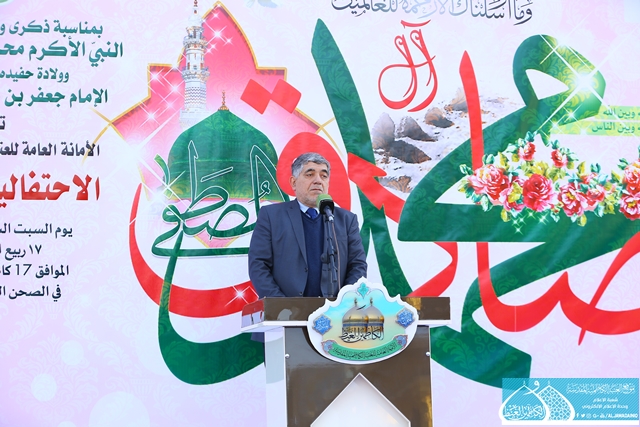 أشرقت الدنيا بفاتح الخير بالوحي والتنزيل، هادي الأمة ومنقذها من الظلمات إلى النور النبي محمد، وصادق بيت الوحي سادس أئمّة الهدى الإمام جعفر بن محمد الصادق "صلوات الله عليهم" واحتفاءً بهذه المناسبتين المباركتين، أقامت الأمانة العامة للعتبة الكاظمية المقدسة حفلها المركزيّ البهيج ضمن فعاليات مشروعها الثقافيّ والإنساني الذي انطلقت به تحت شعار(رسولنا .. أسوتنا), بحضور نائب الأمين العام للعتبة الكاظمية المقدسة وأعضاء مجلس الإدارة وعدد من الشخصيات الدينية والاجتماعية. استهلّ الحفل بتلاوة مباركة من الذكر الحكيم، تلتها كلمة العتبة الكاظمية المقدسة التي ألقاها نائب أمينها العام د. محمد حسين علي تحدث فيها قائلاً:" الحمد الله الذي وفقنا جميعاً للحضور في هذا الجمع المبارك، إذ تمرّ علينا مناسبتان عظيمتان ولادة الرسول الأعظم محمد "صلى الله عليه وآله" وحفيده الإمام الصادق "عليه السلام"، فلا بدّ أن تكون ذكريات الأئمة المعصومين "عليهم السلام" محطات لنتزوّد منها القيَم الإسلامية السامية"، وأضاف: أن الاحتفال ليس تجديداً لتجربة تاريخية حصلت في ظروف معينة، وإنّما هو استحضار واعتراف كلّي بوجود الرسول "صلى الله عليه وآله" في عالم الخلق وإنه السابق لكلّ الخلق بفضائله الإنسانية، وعن شخصية الإمام جعفر الصادق "عليه السلام" بيّن إنها عنصر من عناصر وحدة الأمة فقد تتلمذ على يده أئمة المذاهب الإسلامية، وعلينا أن نلتزم بذكراه وبوصاياه لنا ومن أهمها (كونوا زيناً علينا ولا تكونوا شيناً علينا حتى يقولوا: رحم الله جعفر بن محمد ما أحسن ما أدَّب به أصحابه). بعدها اعتلى المنصّة فضيلة الشيخ منير الكاظمي ليتحف الحضور بمحاضرة دينية قيّمة بهذه المناسبة تحدّث فيها عن الإنجازات النبوية، والمعاجز الرسالية، وكذلك عن صفات رسولنا الصادق المصدق الأمين وسمو أخلاقه وعظيم شمائله، التي ارتقت في نفسه "صلى الله عليه وآله وسلم" مستشهداً بقول تعالى: (وَإِنَّكَ لَعَلى خُلُقٍ عَظِيمٍ). كما تطرق إلى شذرات من السيرة العطرة للإمام جعفر بن محمد الصادق "عليه السلام" ومناقبه وفضائله وسجاياه وجامعته العظيمة التي أشرقت على الدنيا منهجاً وعلماً وأخلاقاً، فهو "عليه السلام" المؤتمن على الشرع المبين والمدافع عن عقيدة سيد المرسلين"صلى الله عليه وآله". وختم فضيلته بالقول: أن أصحاب هذه المناسبة لو قُدر لسيرتهم ومسيرتهم أن تأخذ مجالها في حياتنا فلاشكَّ ولا ريب سنعيش حاضراً مشرقاً وزاهراً. وشهد الحفل مشاركة لفرقة إنشاد الجوادين حيث صدحت حناجر منشديها بموشّحات إسلامية ترنّمت في حبّ النبي وآله الأطهار "عليهم السلام"، وكانت هناك مشاركة لشاعر أهل البيت الأديب مهدي جناح الكاظمي بقصيدة ولائية عنوانها: جبل النبوة محمد"صلى الله عليه وآله"، واختتم الحفل بمشاركة الرادود الحسيني كرار الكاظمي بأهازيج الفرح والسرور لذكرى سيد الكونين وعترته الطاهرة"عليهم السلام"، اضفت روح البهجة بين زائري الإمامين الكاظمين "عليهما السلام".