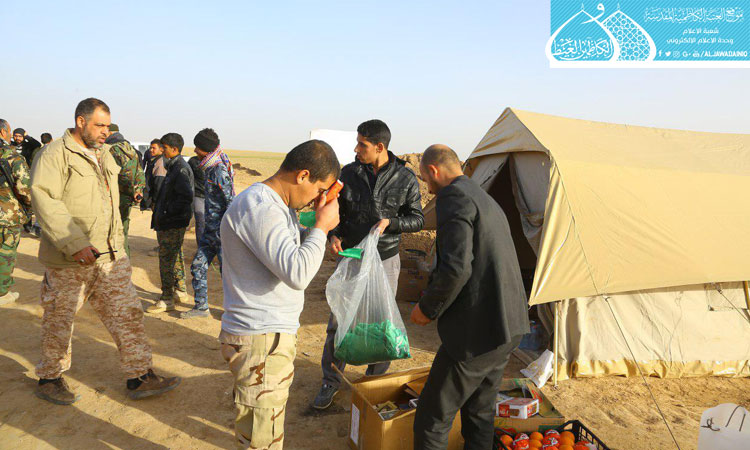 زار وفد خدّام العتبة الكاظمية المقدسة قواطع العمليات العسكرية التي تتواجد فيها فصائل الحشد الشعبي المرابطة بـ "تل عبطة" في قضاء تلعفر بمحافظة الموصل ، والتقى الوفد بسماحة السيد حميد الياسري وعدد من القيادات العسكرية وكوكبة من مقاتلي أنصار المرجعية وقوة الكاظمين القتالية وتفقد خلال الزيارة الوضع العام للقطعات العسكرية في تلك المناطق والاطلاع على أحوال المقاتلين، كما استمع الوفد إلى بعض الاحتياجات والمتطلبات التي تسهم في إدامة النصر في المعركة، وتساعد على تعجيل النصر وهزيمة الأعداء الطغاة. من جانبهم عَبَّر الإخوة المجاهدون الذي كانوا باستقبال وفد العتبة المقدسة ومرافقته في جولته الميدانية في ميدان المواجهة عن فرحهم وسرورهم البالغ لهذا اللقاء المبارك، وثمّنوا هذه الخطوة المهمّة التي تبنّتها العتبة المقدسة، والشعور العالي بالمسؤولية والالتزام الديني والأخلاقي والوطني الذي يتمتع به خَدَمة الإمامين الجوادين "عليهما السلام"، اتجاه إخوانهم وأبنائهم الغيارى في الحشد الشعبي، والقوات المسلحة الباسلة، كما أبدوا امتنانهم وشكرهم البالغ إلى الأمانة العامة للعتبة المقدسة لما قدّمته من دعم معنوي ومادي الذي ساهم في رفع معنويات المقاتلين، والشد على سواعدهم الكريمة وهم يحرّرون أرض العراق من براثن الإرهاب التكفيري.