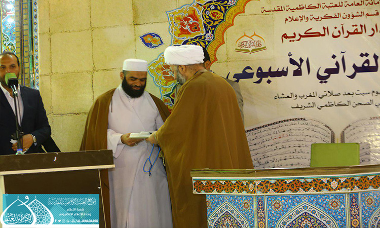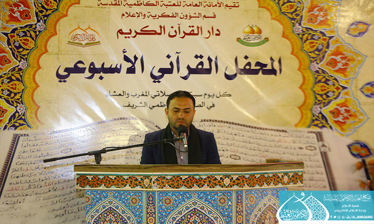 بمناسبة ذكرى ولادة الصديقة الطاهرة فاطمة الزهراء عليها السلام، وضمن مشروع العتبة الكاظمية المقدسة القرآني، الذي بات منطلقاً لترسيخ الثقافة القرآنية وتعاليمه الإيمانية بين الأوساط الاجتماعية، انطلقت فعاليات المحفل القرآني الأسبوعي الذي تقيمه الأمانة العامة للعتبة الكاظمية المقدسة/ قسم الشؤون الفكرية والإعلام ـ دار القرآن الكريم، يوم السبت 18 آذار 2017 بحضور نائب الأمين العام للعتبة الكاظمية المقدسة وعدد من أعضاء مجلس الإدارة ومجموعة من الأساتذة المتخصصين والمهتمين بالشأن القرآني. شهد المحفل في أسبوعه الأول استضافة القارئ حامد زيدان، والشيخ حسام المنشداوي وقارئ عتبة السيدة معصومة مهدي علم خا، إذ اتحفوا الحفل بتلاواتهم المباركة وأصواتهم الشجية، وتخلل المحفل مشاركة فرقة إنشاد الجوادين وتوزيع الشهادات التقديرية والهدايا على المشاركين. من الجدير بالذكر أن العتبة الكاظمية المقدسة مستمرة بإقامة محافلها القرآنية الأسبوعية كل يوم سبت بعد صلاة العشائين واستضافتها لشخصيات قرآنية بارزة.
