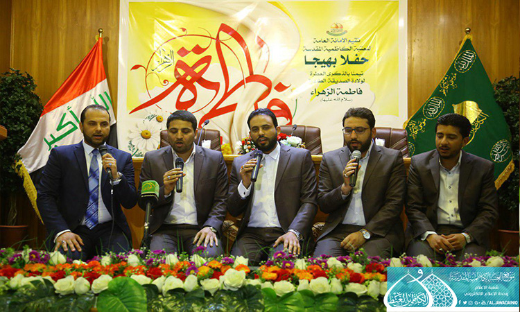 وشمل الحفل فعالية لفرقة الجوادين الإنشادية بالأناشيد الإسلامية، تبعتها مشاركة للرادود الحسيني كرار الكاظمي بالأهازيج والرّدات التي ترنمت بحق صاحب الذكرى "عليها السلام"