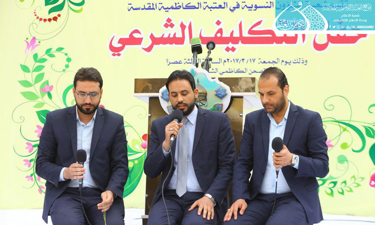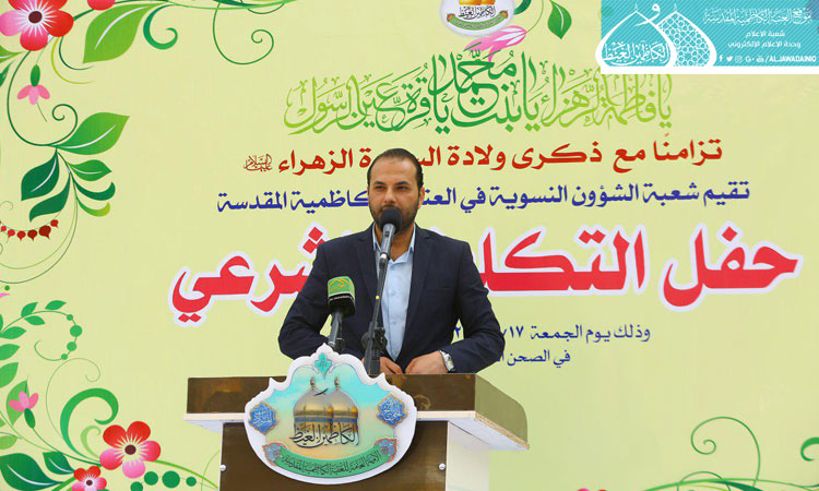 احتفاءً بذكرى ولادة سيدة الطهر والقداسة فاطمة الزهراء "عليها السلام" ، أقامت الأمانة العامة للعتبة الكاظمية المقدسة حفل التكليف الشرعي يوم الجمعة 17 آذار 2017 ، بحضور نائب الأمين العام للعتبة الكاظمية المقدسة سماحة الشيخ عَدِي الكاظمي، وعوائل الفتيات المشاركات والبالغ عددهن (280) مكلفة. افتتح الحفل بتلاوة آيات بينات من كتاب الله العزيز، أعقبها كلمة الأمانة العامة للعتبة الكاظمية المقدسة ألقاها سماحة الشيخ عَدِي الكاظمي هنأ في مطلعها الحضور بهذه المناسبة الميمونة، وبيّن أهمية التكليف الشرعي قائلاً: " أن التكليف الشرعي مسؤولية ملقاة على الإنسان نفسه وعلى ذويه وعلى المجتمع، إذ إننا نقف إزاء مرحلة خطيرة تزخر بالتحديات، فالأعداء يحيطون بنا من كل حدب وصوب مستخدمين كل الوسائل للقضاء على ديننا الحنيف ومعتقداتنا والنَيل من شبابنا وفتياتنا، فلا بد أن نكون في وعي تام ويقظةٍ للتصدي لذلك. ومن أشد الوسائل فتكاً هو الغزو الفكري والحضاري، واليوم تكتسح وسائل الإعلام المتطورة والتواصل الاجتماعي حياتنا وبيوتنا وأسرنا، محاولةً زعزعة ثقافتنا الإسلامية لاستبدالها بالتفسخ والانحلال الخلقي، كما يجب على الأمهات متابعة فتياتهنَّ في كيفية أداء الفرائض اليومية وحثّهنّ على التوجه إلى الله عز وجل بالتزامهنّ بالعبادات والاهتمام بالثقافة الإسلامية المحمدية واتباع ثقافة وتعاليم أهل البيت(عليهم السلام)". وشهد الحفل مشاركة لفرقة إنشاد الجوادين، ومشهداً تمثيلياً بعنوان (حجابي)، ومسابقة الأسئلة، واختتم الحفل بتوزيع مجموعة من الهدايا على المشاركات ممن بلغن سنّ التكليف الشرعي .