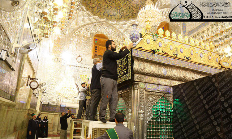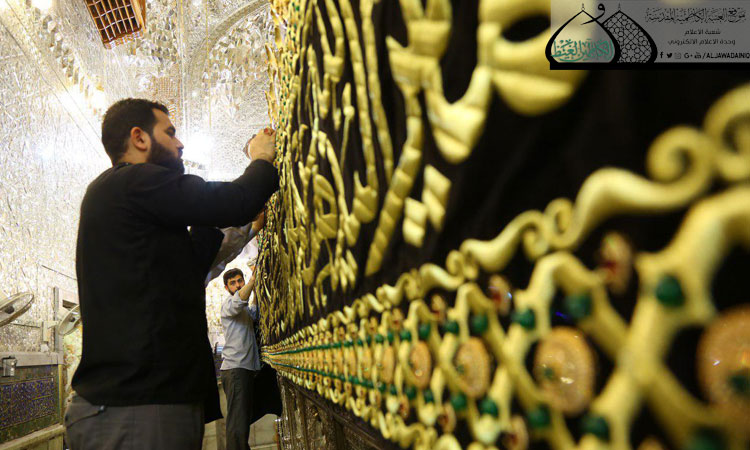 بدأت تعم أرجاء الصحن الكاظمي الشريف بأجواء الحزن والأسى مع قرب حلول ذكرى استشهاد باب الحوائج موسى بن جعفر الكاظم، حيث قام خدام العتبة الكاظمية المقدسة في وحدة الخياطة والتطريز وبالتعاون مع حدة الحرم، بإنجاز مجموعة من الأعمال منها نصب وتركيب الوشاح الأسود للضريح الشريف للإمامين الجوادين "عليهما السلام" المطرز بآية التطهير والعبارات الولائية.