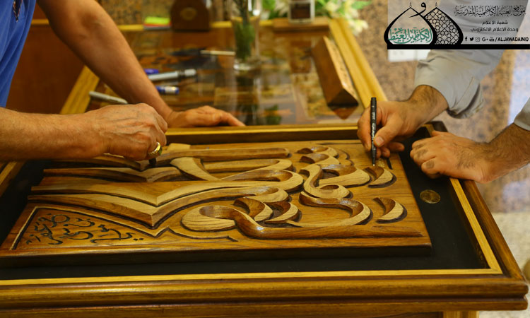 لوحات فنية جديدة لوحدة النقش والزخرفة في العتبة الكاظمية المقدسة، تميزت برؤى وأفكار وزوايا جديدة ذات قيم جمالية، أفصحت عنها تلك الأنامل المبدعة لتوصل رسالتها للعالم أجمع بأن الإمام موسى بن جعفر الكاظم "عليه السلام"، استطاع من تلك الزنزانة أن يضع هارون الجبت والطاغوت خلف قضبان العدالة وأمام محكمة التاريخ ليصبح سجين لعنات الدهر وغضب رب السموات. وللتعرف على أهم إنجازات وحدة النقش والزخرفة بمناسبة ذكرى الاستشهاد الأليمة حدثنا خادم الإمامين الجوادين الأستاذ إبراهيم النقاش قائلاً: الكلّ يعلم مدى حجم الزيارات التي تشهدها العتبة الكاظمية المقدسة وعلى وجه الخصوص ذكرى استشهاد المعذب في قعر السجون وظلم المطامير الإمام موسى بن جعفر الكاظم "عليه السلام" وكيف تُستقبل هذه المناسبة الأليمة من قبل المؤمنين والموالين وهم يستذكرون منزلته ومقامه العظيم "عليه السلام" لدى الباري عز وجل، " لذا من الضروري أن تكون لكل الفنانين والمبدعين بصمات في مثل هكذا مهرجانات دينية تحتضن تلك الحشود المليونية"، فبعد أن قررت الأمانة العامة للعتبة الكاظمية المقدسة أن تطلق برنامجها الديني والثقافي تحت شعار: ( يا سمي الكليم ) ارتأينا أن نخلد شعار هذا العام بلوحة فنية لنساهم من خلالها بنقل الصورة الولائية الخالدة لموالي أئمة أهل البيت "عليهم السلام".